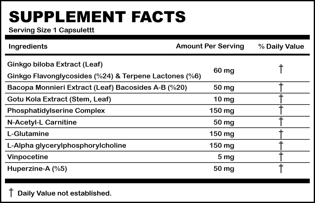 α-GPC (GlyceroPhosphoCholine) and PS (PhosphatidylSerine) are phospholipid nutrients intensively researched for their benefits to diverse human brain functions. α-GPC reaches very high concentrations inside cells; PS is a building block for cell membranes that generate the brain's energy and electricity. Numerous double-blind trials catalog the benefits of GPC and PS for people of all ages. Vinpocetine and Huperzine A improve cognitive performance and short-term memory loss that is sometimes experienced with stress or aging.